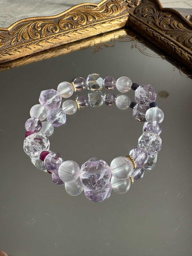 うるうるアメトリン – 透明感あふれる上品な輝きと癒しのエネルギーをあなたに 透明に近い優しい色合いが魅力のうるうるアメトリンビーズ。 控えめながらも華やかさを持ち、どんな洋服にも自然に馴染むため、毎日のコーディネートに取り入れやすいアイテムです ★特徴&効能★ 柔らかな透明感:紫と黄色の絶妙なグラデーションが、上品で落ち着いた美しさを演出 多彩なコーデに相性抜群:シンプルからカジュアル、フォーマルまで幅広く合わせやすい 癒しと心の安定:ストレスや不安を和らげ、心のバランスを整える効果が期待できます ポジティブエネルギー:前向きな気持ちや明るさを引き出し、運気アップのサポートに 繁栄と愛情を引き寄せる:金運や良好な人間関係をサポートすると言われています ★ 使い方&おすすめポイント ★ 日常のアクセントやお守りとしても最適 ギフトとしても喜ばれる、特別なアイテムです