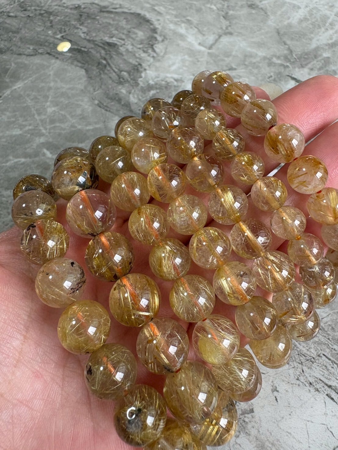 天然ライモナイトを使用した存在感のあるブレスレットです。 透明感のある水晶の中にゴールドカラーの内包物が入り、一つひとつ異なる表情を楽しめます。 16mmの大粒ビーズで、手元にしっかりとした高級感をプラス。 シンプルなコーディネートにも合わせやすく、男女問わずご使用いただけます。 日常使いはもちろん、特別な日のアクセントにもおすすめです。 【商品詳細】 ・石:ライモナイト ・サイズ:約16mm ・内周:約16〜18cm(個体差あり) ・状態:内包物や色味に個体差があります。 ※撮影環境により色味が異なる場合がございます。 ※クラックや内包物が見られる場合があります。