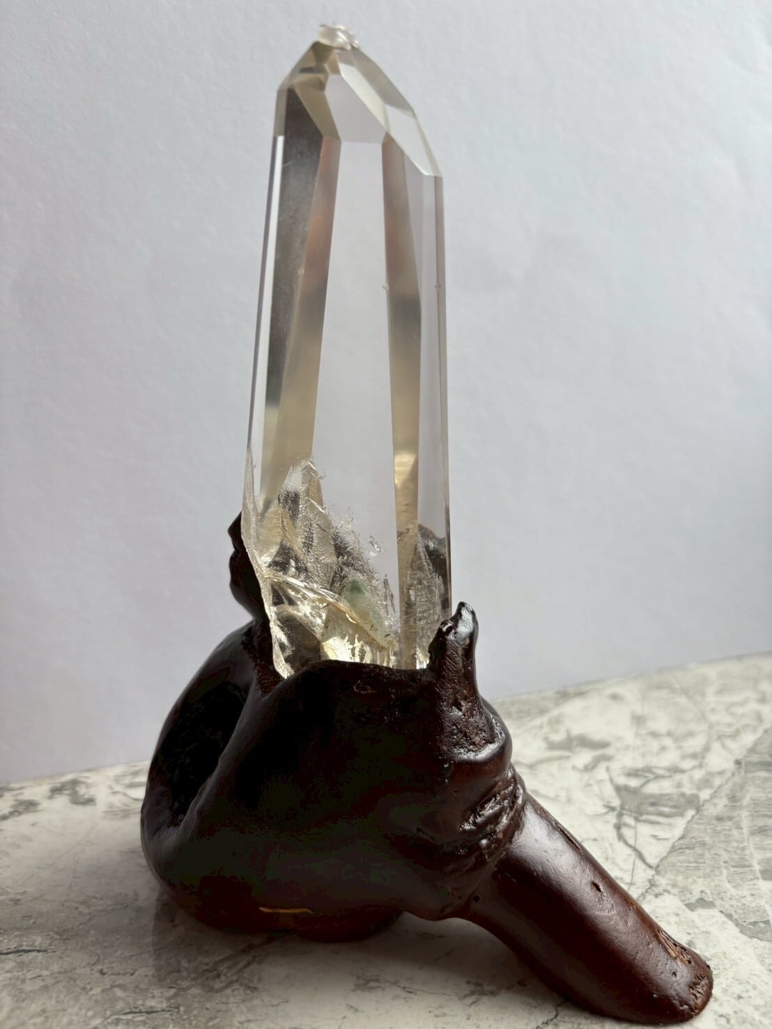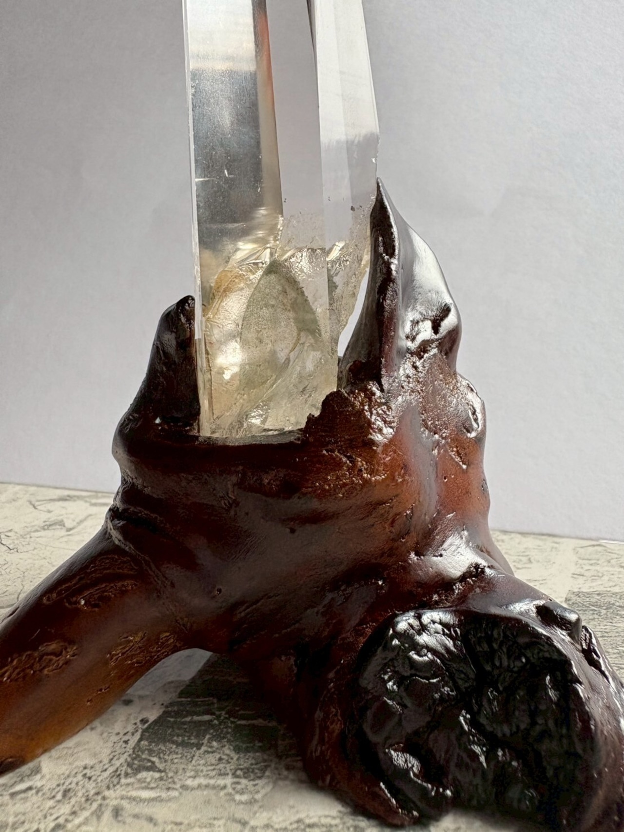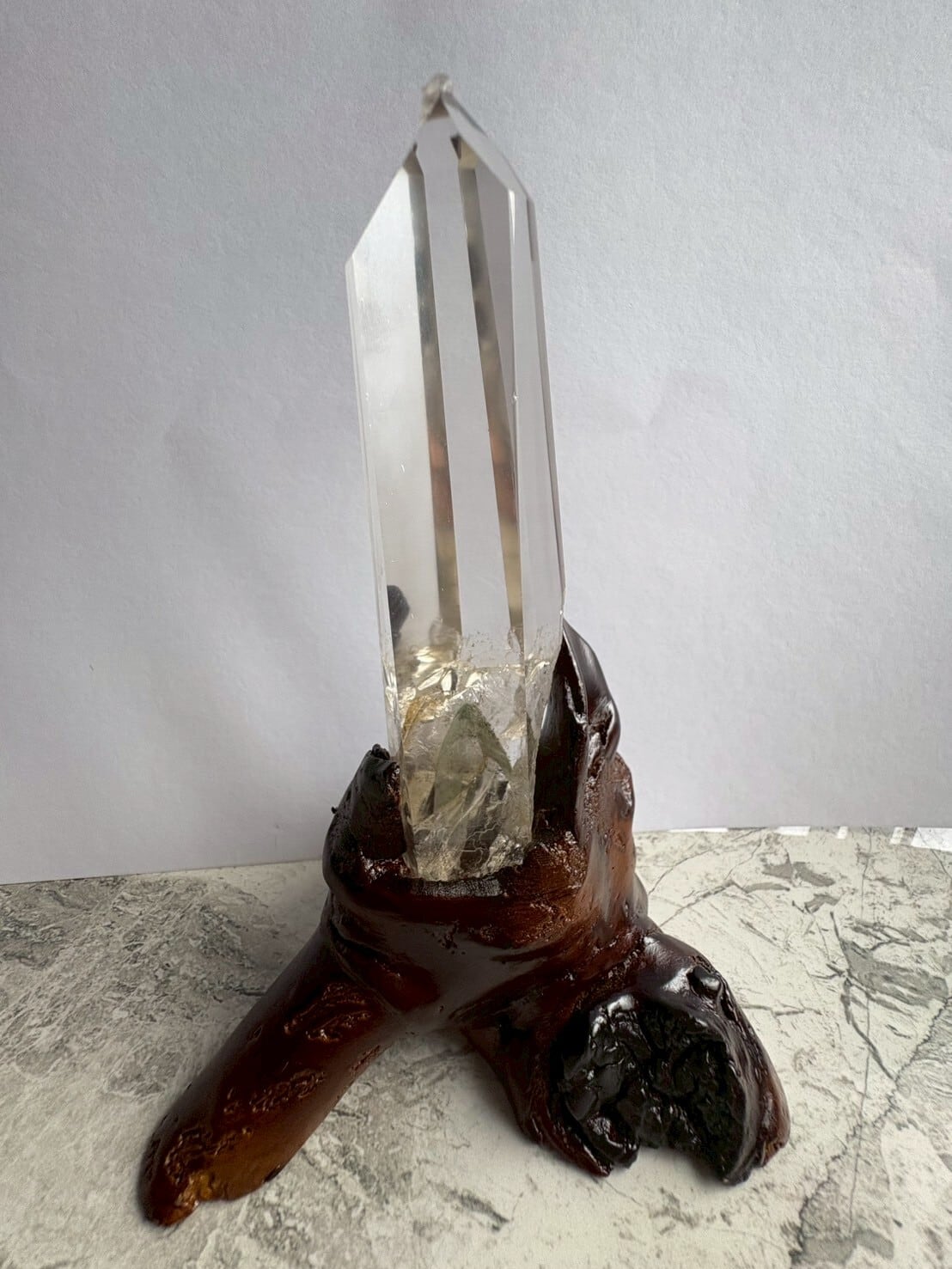 この特別なシトリンタワーは、内部に神秘的なファントムを内包しており、重厚感のある美しさを放っています。
