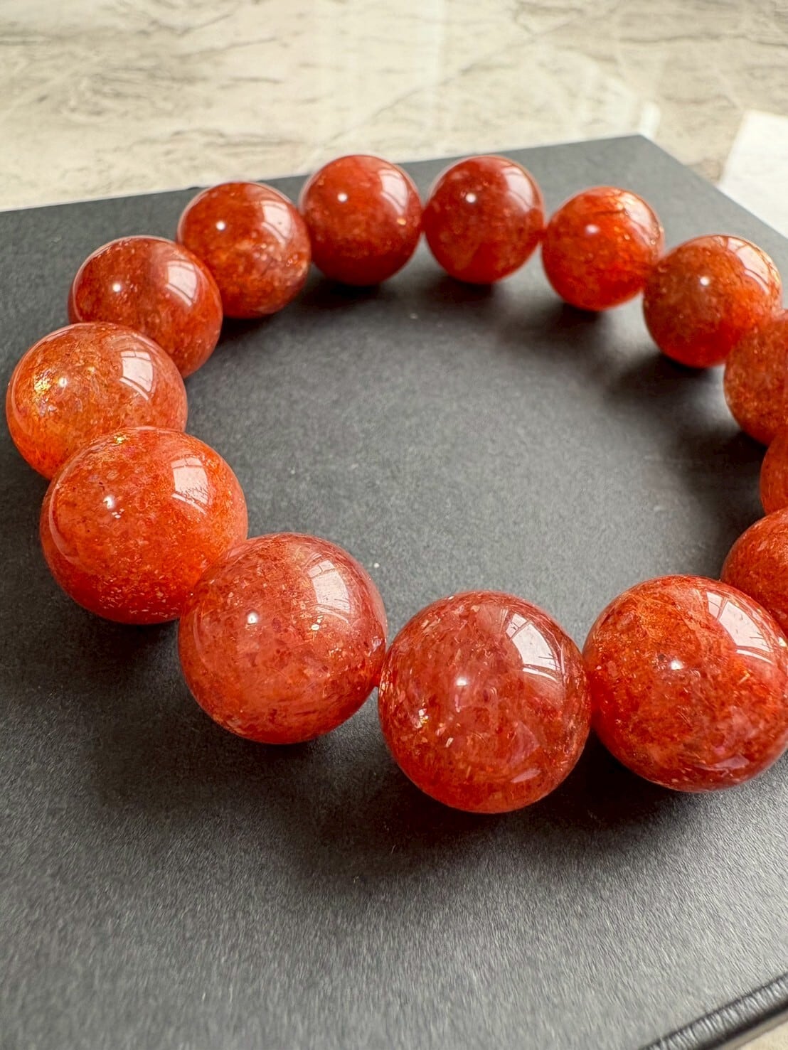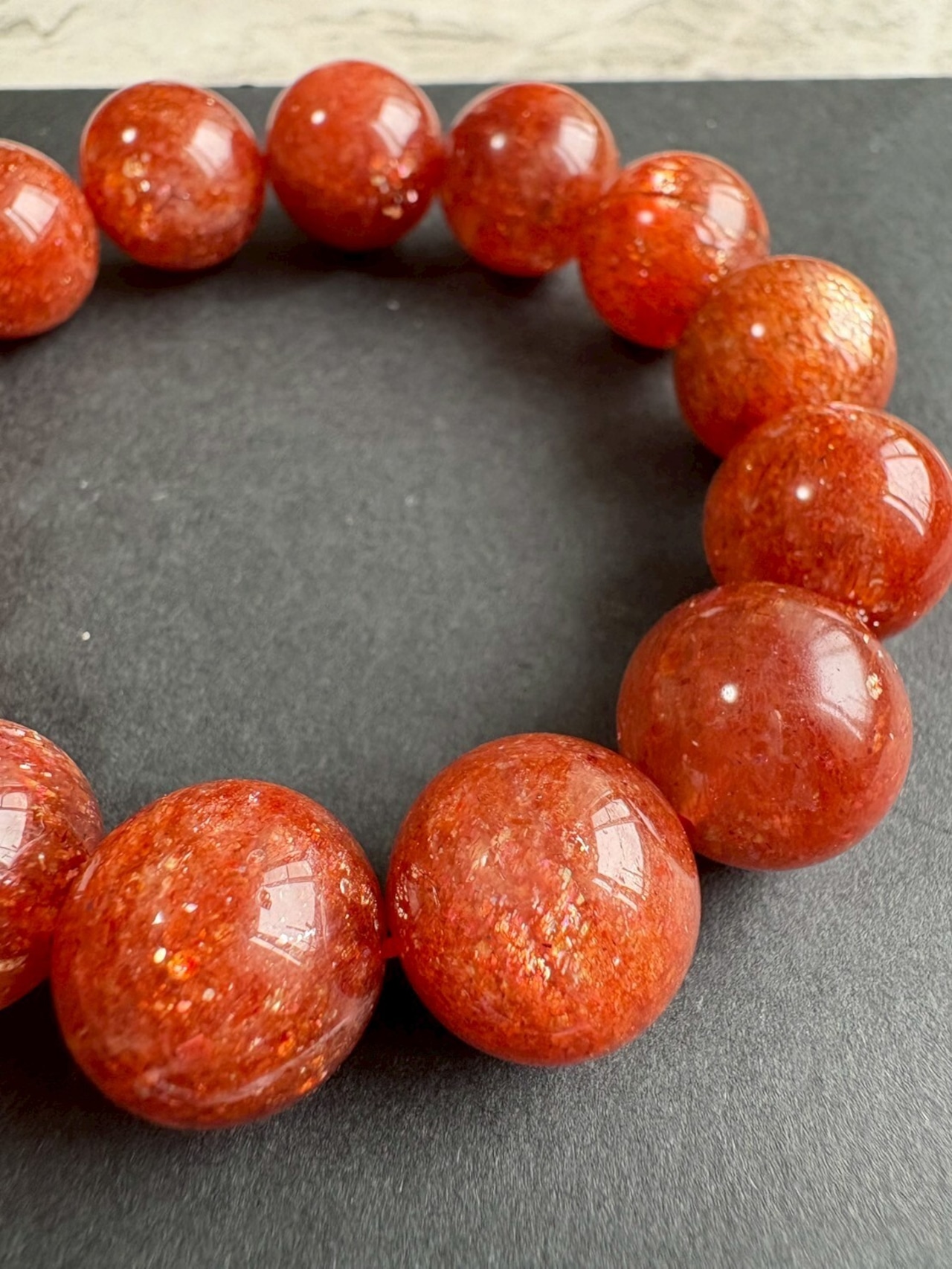 高品質 サンストーン タンザニア産 玉径15㎜〜16㎜ 内径17㎝76g