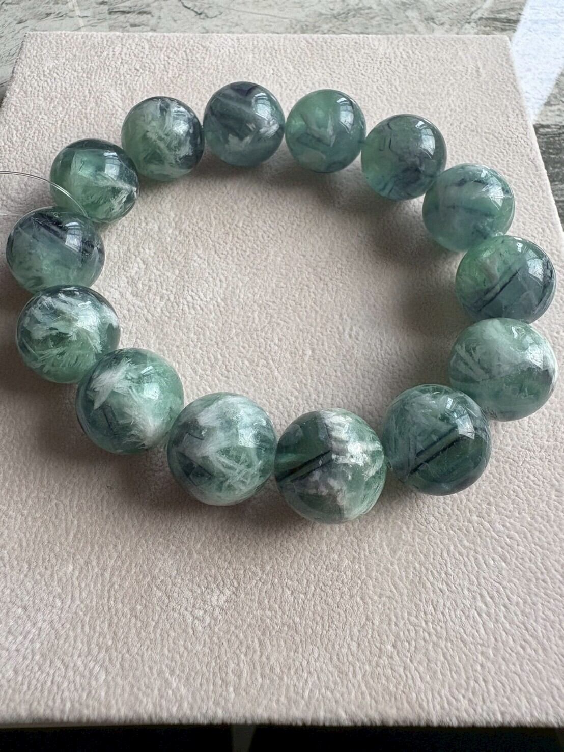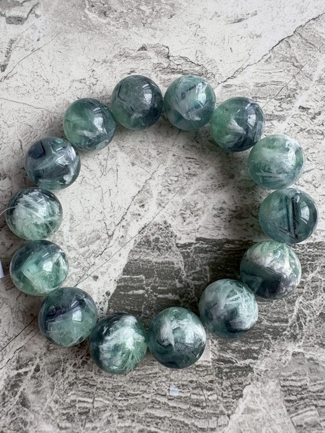 グリーンフェザーフローライト玉径16㎜内径18㎝